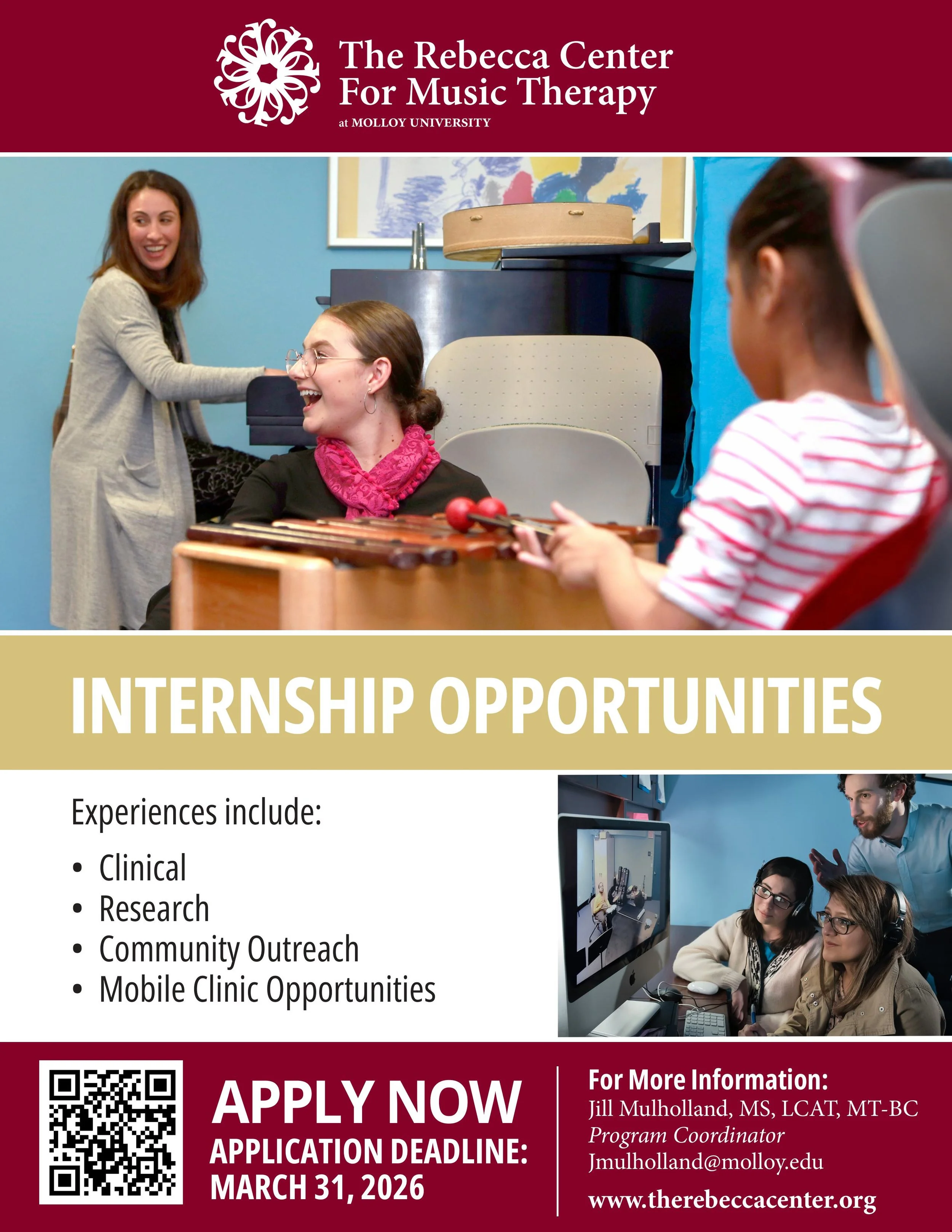 The Rebecca Center for Music Therapy at Molloy University is aimed at discovering the unique potential in every person through interactive musical-play, in order to facilitate engagement, relatedness, communication, and expression. We craft music therapy sessions to support essential social interactions and life processes that are authentic to each person’s lived experience.